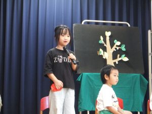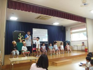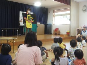保育者の出し物は手品とエプロンシアター『さるかに合戦』でした。