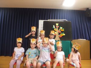みんなよく知っているお話なので「は~やく芽を出せかきのたね♪」と一緒に言ったり「くりがくるよ!」「あとハチも!」と保育者とやり取りしながら楽しそうにみていました😊
