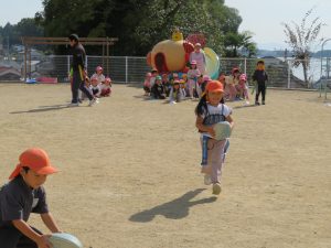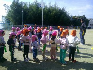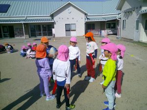 ラグビーボールに触れ、たくさんの体を動かして楽しいひと時を過ごしました。