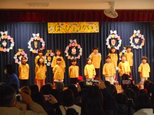 たくさんのお客さんに緊張していたお友達もいましたが、大きな声で歌ったり、元気いっぱい踊ったりして、かわいい姿やかっこいい表情をたくさん見せてくれた子どもたち😊